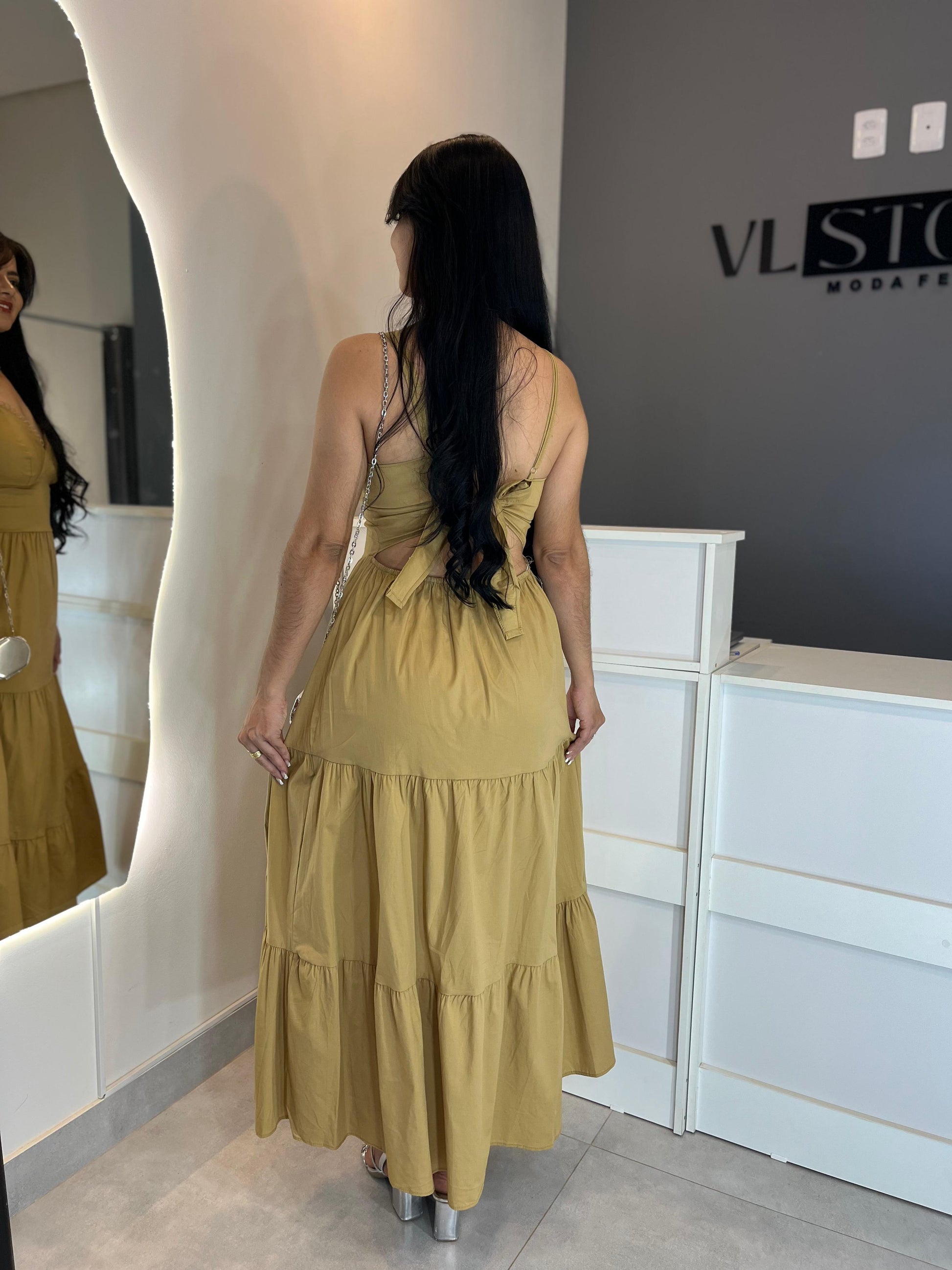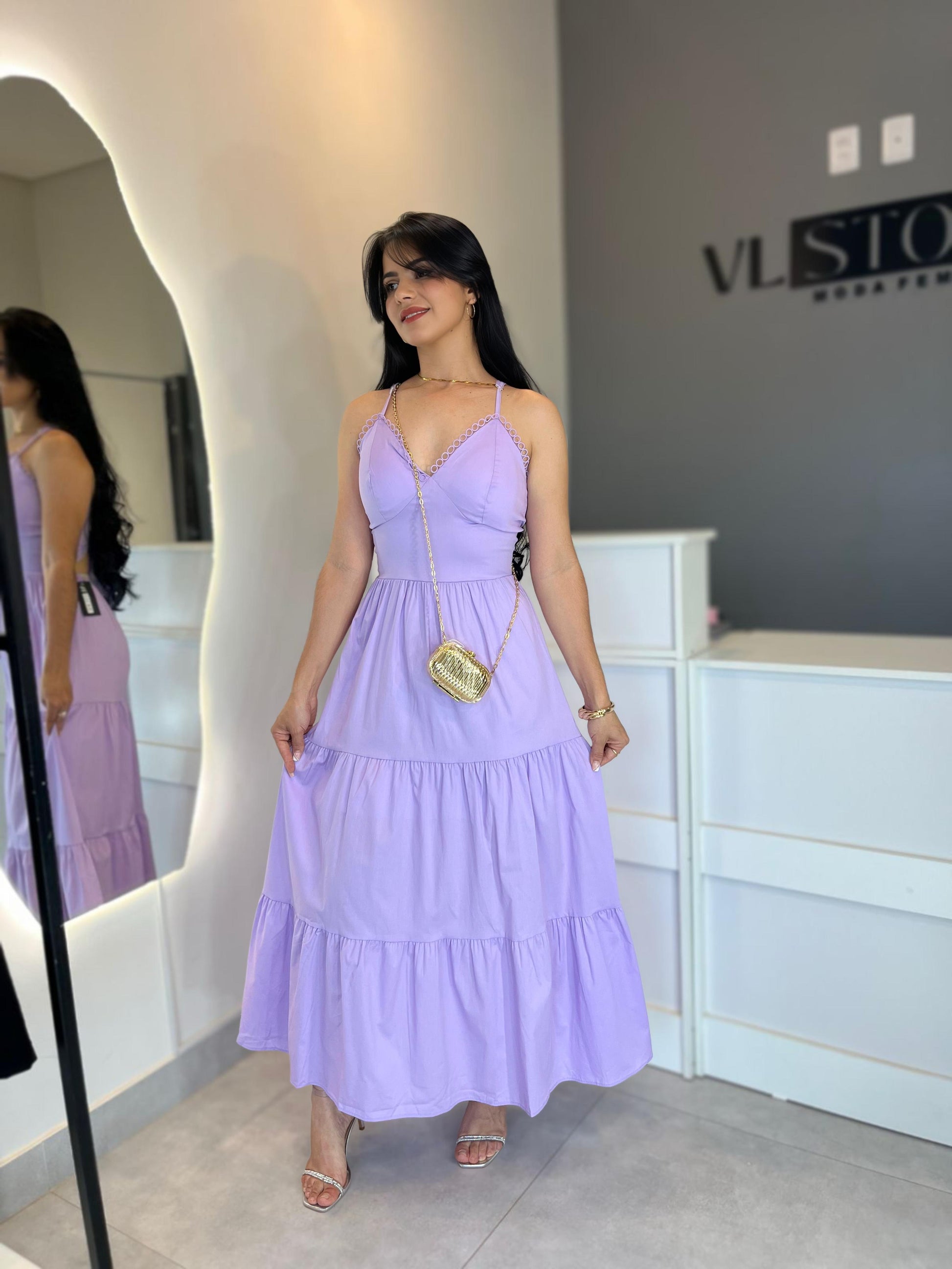 O vestido longo feminino é a peça perfeita para quem busca leveza, frescor e feminilidade em uma única produção. Confeccionado em tricoline, oferece caimento fluído e confortável, ideal para dias ensolarados e ocasiões especiais. Seu design com alças finas e detalhe delicado no busto garante charme extra, enquanto a saia ampla com camadas proporciona movimento elegante ao caminhar.